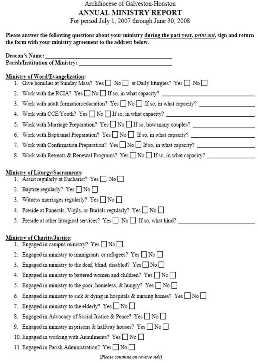 forms have been included. If your ministry is only in the parish,