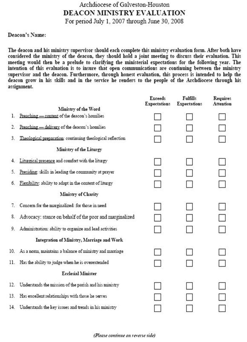 3. Deacon Ministry Evaluation