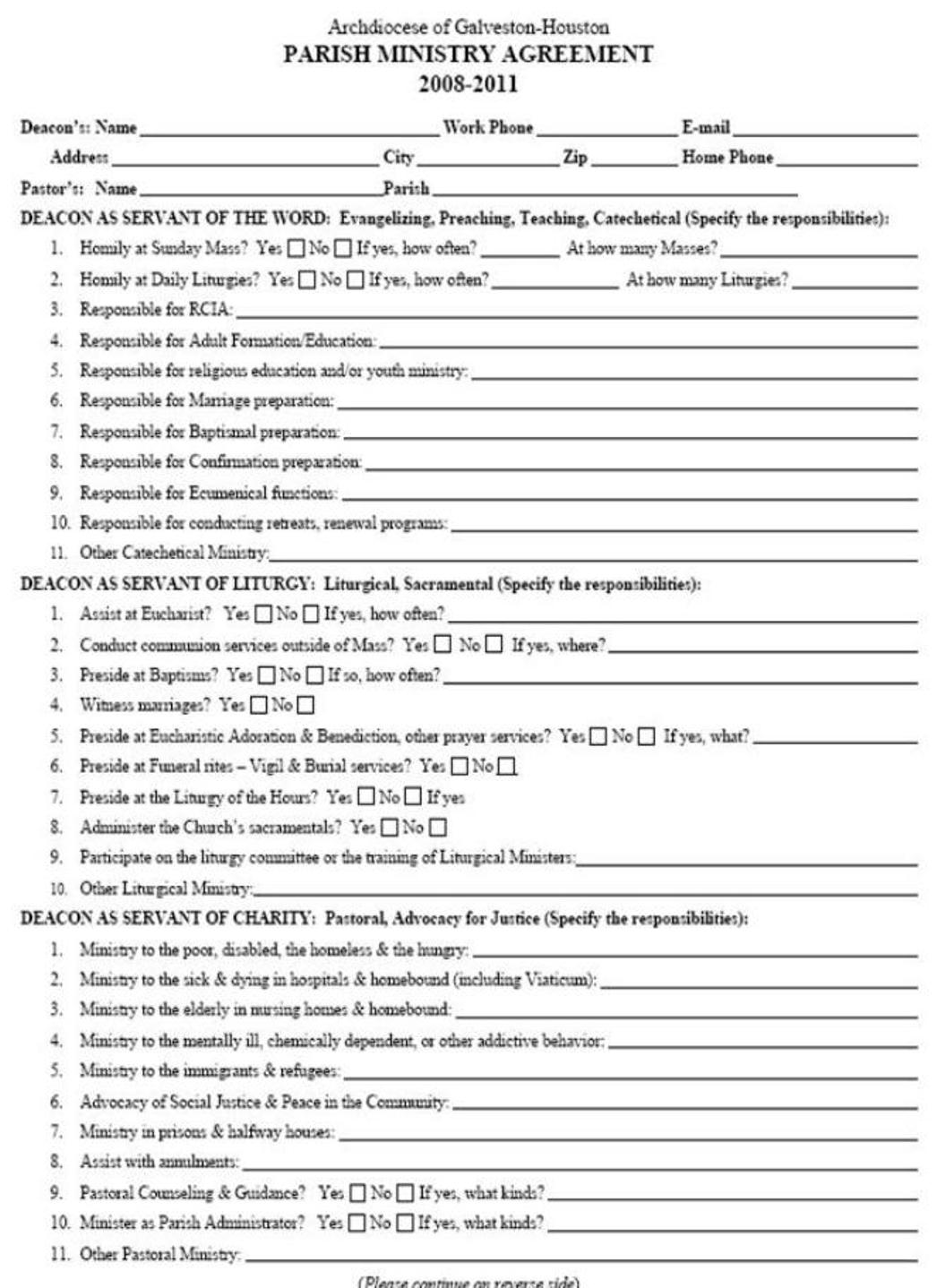 2. Parish Ministry Agreement and/or