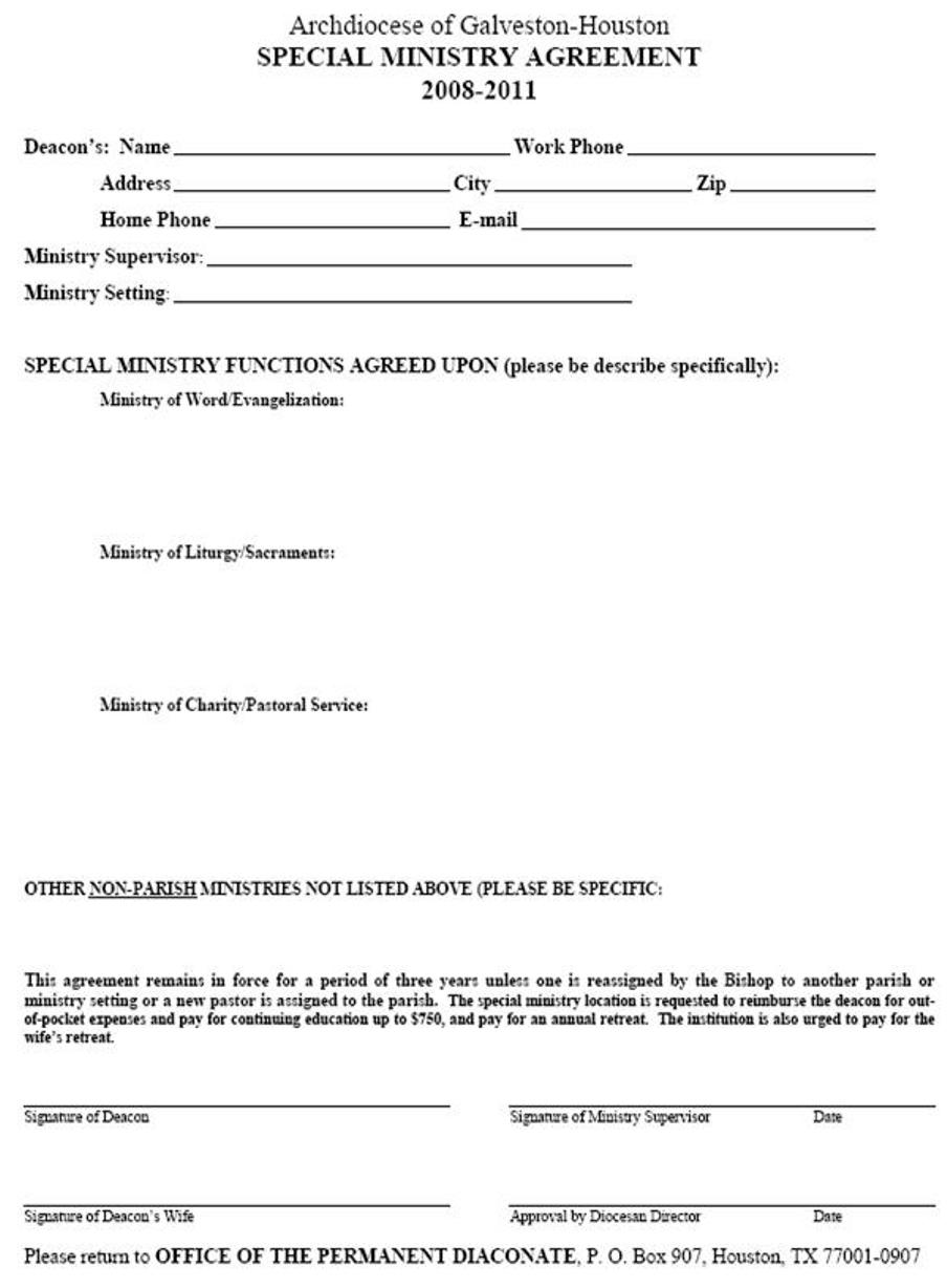 the parish (jail, hospital, etc.) use the Special Ministry Agreement.